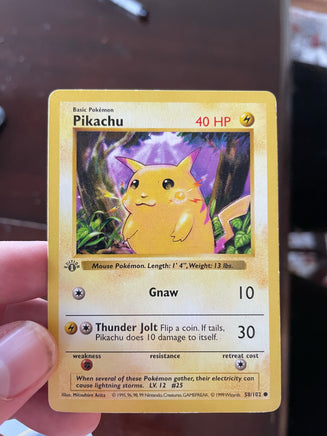1st Edition Shadowless Base Set Starter Pokémon. Includes Base Set Bulbasaur, Charmander, Squirtle, and Yellow Cheeks Pikachu. The starter Pokemon from the very first edition of the very first Pokemon TCG set (1st Edition Shadowless Base Set 102/102).