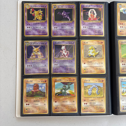 This complete set contains cards ranging from Near Mint (NM) to Moderately Played (MP) and Damaged (DMG). Most cards fall within the Moderately Played to Damaged range, as truly clean copies of early Japanese cards are now extremely difficult to source.
